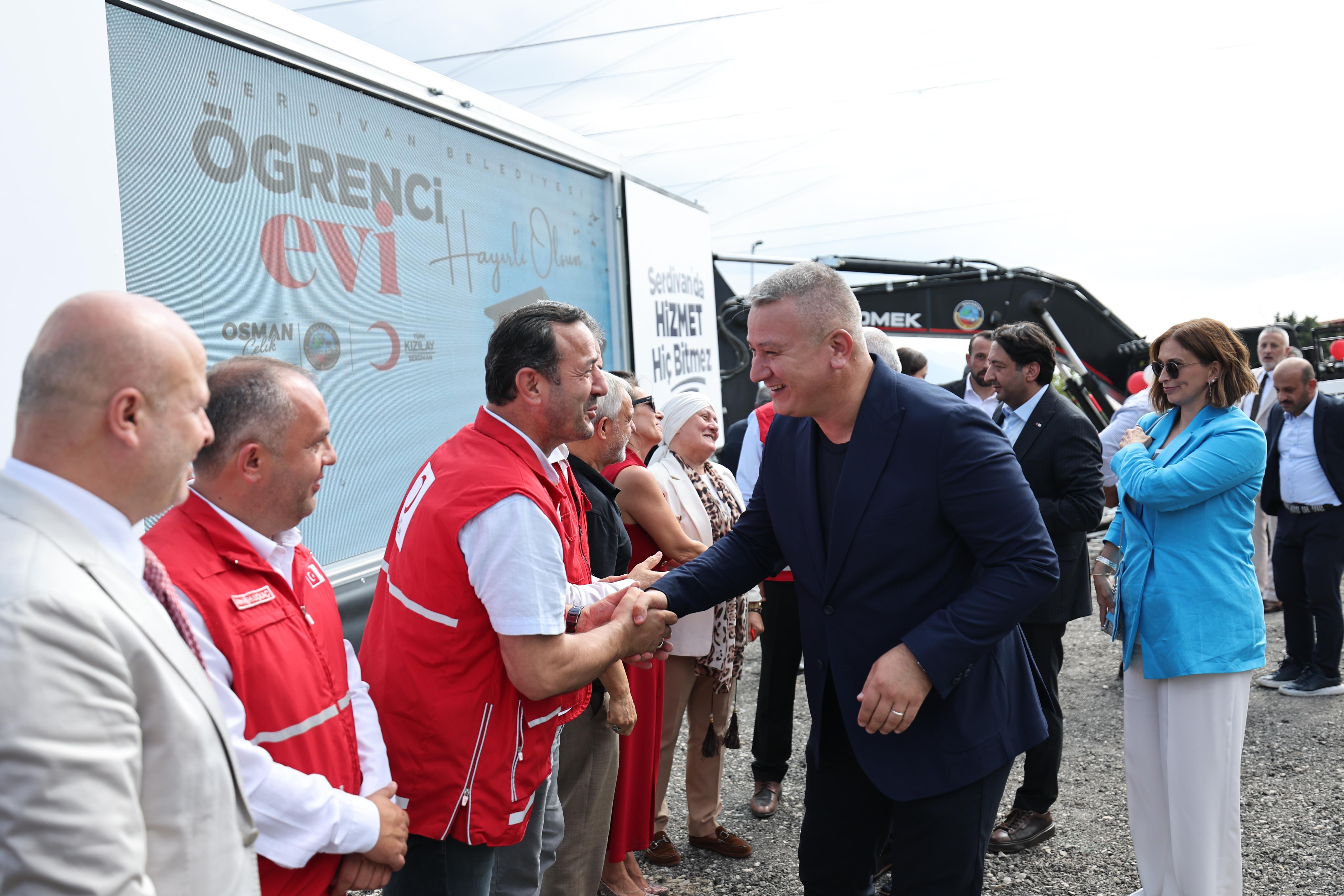 “Öğrenciler İçin Yeni Bir Sosyal Yaşam Alanı”Sakarya Üniversitesi ve Sakarya Uygulamalı Bilimler Üniversitesi öğrencilerinin sosyal ve kültürel ihtiyaçlarına cevap verecek proje 610 m²’lik alan üzerine kurulacak ve bünyesinde; öğrenci aşevi, kütüphane, çamaşırhane, iletişim merkezi ve sosyal donatı alanlarını barındıracak.Öğrenciler, bu merkez sayesinde hem günlük yaşamlarını kolaylaştıracak imkânlara kavuşacak hem de eğitim ve kişisel gelişimlerine katkı sağlayacak yeni bir sosyal yaşam alanına sahip olacak.“Kızılay İş Birliğiyle Önemli Bir Proje Hayata Geçiyor”Törende birer konuşma yaparak duygu ve düşüncelerini dile getiren Türk Kızılay Genel Sekreteri Yusuf Ramazan Saygılı, Sakarya İl Başkanı Cevdet Koç ve Serdivan Şube Başkanı Ercan Garlı; Türk Kızılay’ın hayata geçirdiği projelerin önemine değinerek, Serdivan Belediyesi iş birliğinde yapılacak Öğrenci Evi’nin gençler için büyük bir kazanım olacağını ifade ettiler.Törende katılımcılara hitap eden Serdivan Belediye Başkanı Osman Çelik, gençliğe yapılan her yatırımın çok önemli olduğunu vurgulayarak; “Öğrencilerimizin sosyal ve kültürel ihtiyaçlarını karşılayacak, eğitimlerine ve gelişimlerine katkı sunacak bu kıymetli projenin ilçemize hayırlı olmasını diliyorum. Çıkmış olduğumuz bu yolda herkes ‘Serdivan’da hizmet hiç bitmez’ diyebilsin diye aşkla, şevkle ve sevdayla çalışmaya devam edeceğiz” dedi.