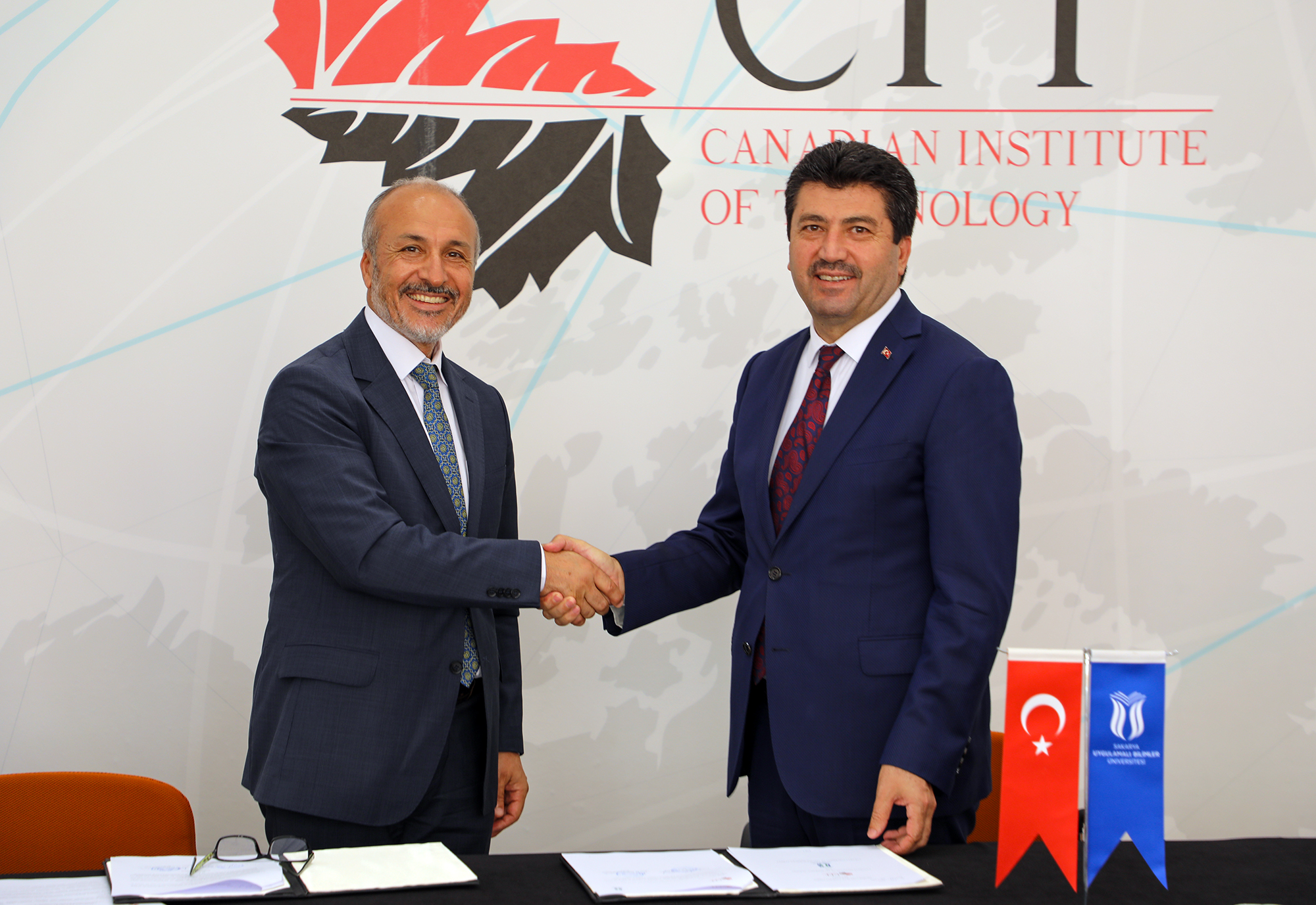 Sakarya Uygulamalı Bilimler Üniversitesi (SUBÜ) ve Arnavutluk’ta bulunan Kanada Teknoloji Enstitüsü (CIT) arasında iş birliği protokolü imzalandı. Protokol SUBÜ Rektörü Prof. Dr. Mehmet Sarıbıyık ve CIT Rektörü Prof. Dr. İsmail Kocayusufoğlu tarafından imza altını alınırken, törende SUBÜ Rektör Yardımcısı Prof. Dr. Sinan Serdar Özkan ve Dil Eğitim-Öğretim Uygulama ve Araştırma Merkezi (SADEM) Müdürü Doç. Dr. Serhat Küçük ile CIT Yöneticisi Ubejd Osmani ve Kalite Güvence Müdürü Bledar Komina da yer aldı. Protokol ile SUBÜ’nün ön lisans programlarından mezun olan ve lisans eğitimlerini CIT bünyesinde sürdürmek isteyen öğrencilere eğitim-öğretim fırsatı tanınacak. İki kurum arasında belirli parametrelerde eşdeğerliğin sağlanması ve öğrencilerin işlemlerinin kolaylaştırılması için bir komisyon oluşturulacak.
