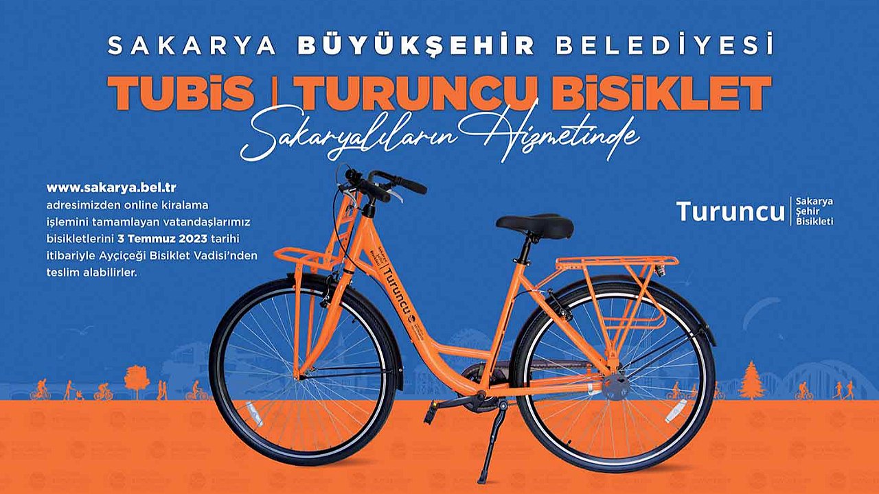 Büyükşehir Belediyesi’nden konuyla ilgili yapılan açıklamada, “Yeni Nesil İklim Dostu Bisikletli Ulaşım Projemiz ‘TUBİS Turuncu Bisikletler 3 Temmuz Pazartesi günü itibariyle kiralanmaya başladı. 1, 3 ve 6 aylık olmak üzere kiralanabilecek turuncu bisikletlerin kiralama işlemleri web adresimiz www.sakarya.bel.tr’den gerçekleştirilecek. Bisikletseverler dilerlerse çocuk koltuğu ve kasklarını da uygun fiyatlar karşılığında kiralayabilecek. Bisikletseverler Turuncu Bisikletleriyle yeşillikler içerisinde, Çark Deresi kenarında gezebileceği gibi, çok yakında tamamlanacak bağlantı yollarımızla kesintisiz olarak Sapanca Gölü kenarından Kocaeli iline kadar bisiklet sürebilecek, her geçen gün genişleyen bisiklet yolları ağımızla şehrin dört bir yanına ulaşabilecek. Tüm bisikletseverlere turuncu bisikletlerle güvenli sürüşler dileriz” ifadeleri kullanıldı.