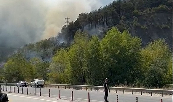 Sakarya'nın Geyve ilçesi Doğançay mevkiinde devam eden orman yangını nedeniyle, Karaçam Et Lokantası bölgesinden itibaren yol araç trafiğine kapatıldı.