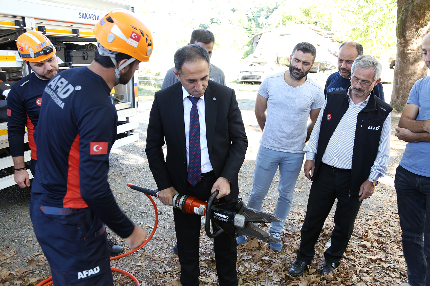 AFAD’a destekleri ve eğitimleri için teşekkür eden SUBÜ Rektör Yardımcısı Prof. Dr. Oğuz Türkay, “Üniversitemiz bünyesinde tamamen gönüllülerden oluşan bir arama kurtarma ekibinin olmasından ve afet durumunda doğrudan ilgili bölgelere intikal ederek fayda üretmelerinden büyük memnuniyet duyuyoruz. AFAD’ın son derece gelişmiş imkânları ve personelleri var. Ancak afetlerin yeri ve büyüklüğünü takdir etmek bizlerin elinde değil. Bu nedenle gerekli arama kurtarma eğitimlerini almış gönüllüler de büyük öneme sahip. Her alanda fayda üretmeyi hedef edinmiş bir üniversite olarak bu gibi sosyal sorumluluk faaliyetlerinde de yer almayı önemsiyoruz. Her bir gönüllümüzü böylesi önemli bir işin içinde yer aldıkları için can-ı gönülden kutluyorum” ifadelerini kullandı.